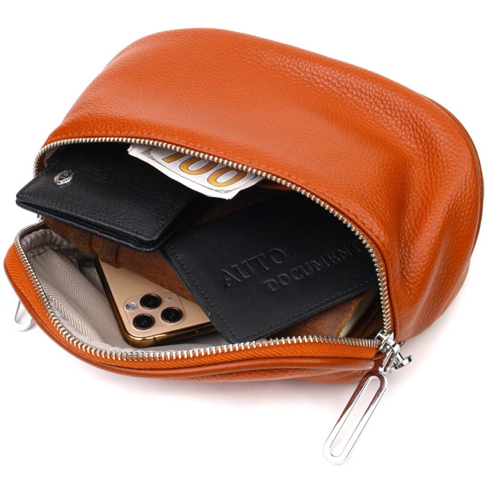 Красива жіноча сумочка з натуральної шкіри високої якості. Виріб дуже зручний, можна носити на плечі та через плече, відмінний повсякденний варіант невеликої сумки. Модель доповнена фурнітурою сріблястого кольору. Аксесуар має одне основне відділення в якому дві кишеньки - на блискавці та відкритого типу. Модний та практичний варіант сумки для стильних жінок.