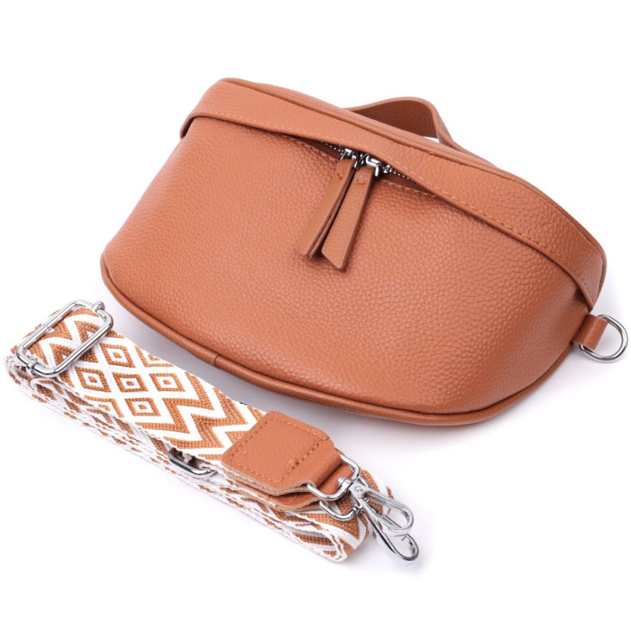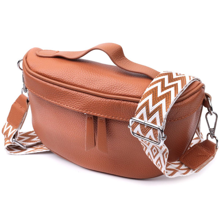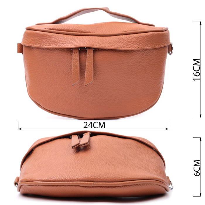 Практична та актуальна цього сезону сумка через плече з натуральної шкіри. Аксесуар складається з основного відділення, що закривається на блискавку, кишені на блискавці та кишені відкритого типу усередині. Носити сумку можна на плечі, через плече, а також в руках для цього є текстильний ремінь, що знімається, і шкіряна ручка.