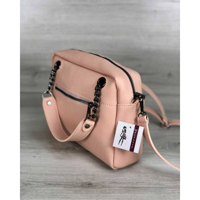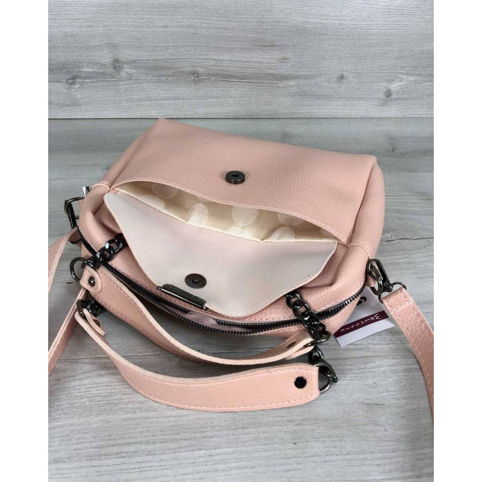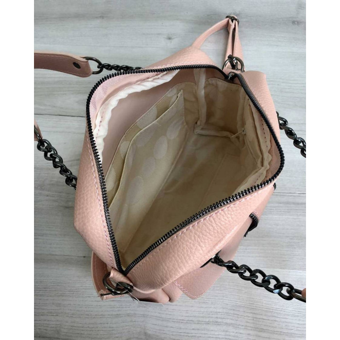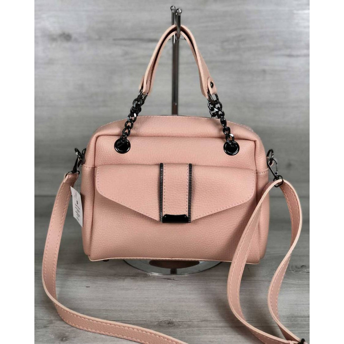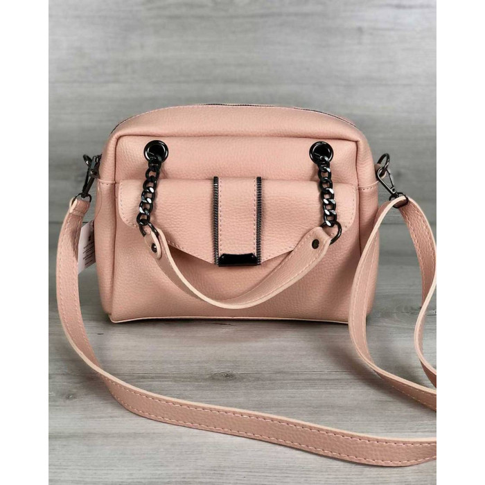 Стильна молодіжна сумка Хлоя виконана зі штучної шкіри високої якості. Сумка відкривається за допомогою блискавки. Спереду сумки є повноцінне відділення на клапані. Ручки сумки виконані з додатковим аксесуаром - ланцюжком. Сумка на підкладці, має всередині дві кишені: відкрита і на блискавки. Ззаду є кишеня для дрібних предметів.