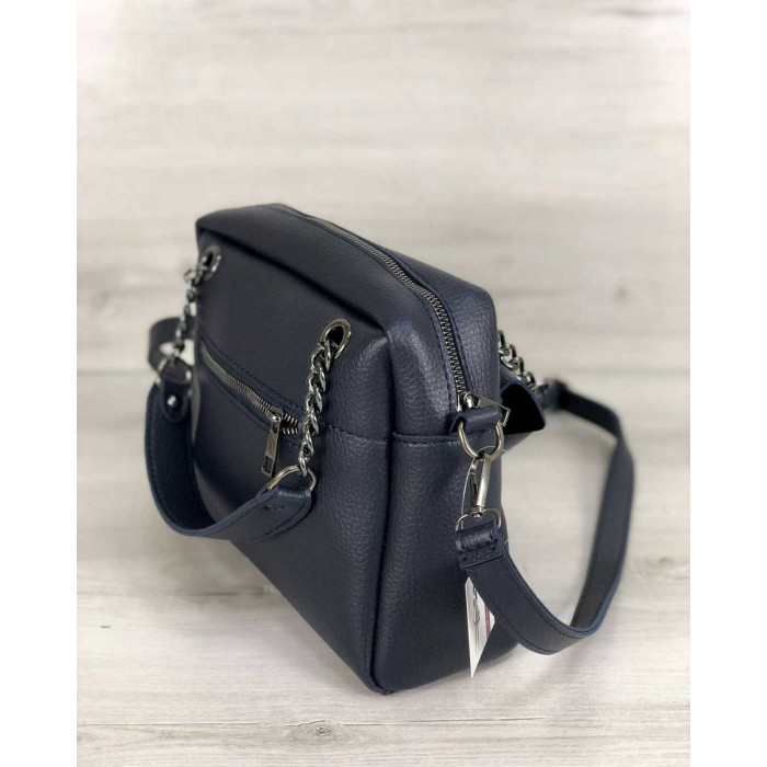 Стильна молодіжна сумка Хлоя виконана зі штучної шкіри високої якості. Сумка відкривається за допомогою блискавки. Спереду сумки є повноцінне відділення на клапані. Ручки сумки виконані з додатковим аксесуаром - ланцюжком. Сумка на підкладці, має всередині дві кишені: відкрита і на блискавки. Ззаду є кишеня для дрібних предметів.