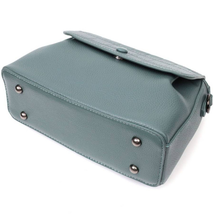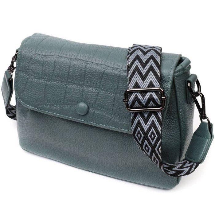 Сумка для стильних і впевнених у собі жінок із фактурним клапаном із натуральної шкіри флотар, яка невибаглива у догляді та довго носиться. Аксесуар складається з трьох основних відділень, двох відкритого типу та одного посередині, що закривається на молнию та має потайний карман на молнии, карман відкритого типу та кармани на молнии ззовні. Носити сумку можна під рукою, на плечі і через плече, для цього є два знімаються ремні, текстильний і шкіряний. У виробі використано якісну фурнітуру кольору темного срібла. Універсальний варіант сумки як на вечір, так і як сумочка на кожен день.