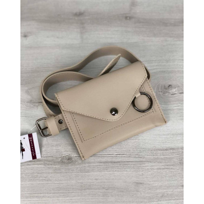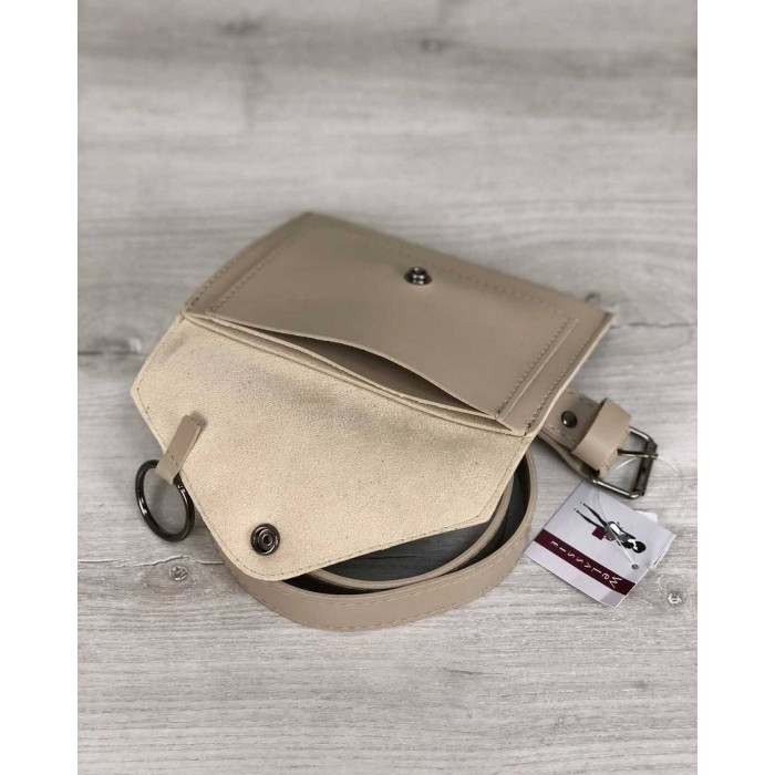 Молодіжна шкіряна сумка на пояс Moris виготовлена з еко-шкіри високої якості. Має одне відділення, яке відкривається за допомогою кнопки. Сумка без підкладки, всередині має 2 відділення. Діаметр кільця на сумці 4 см.