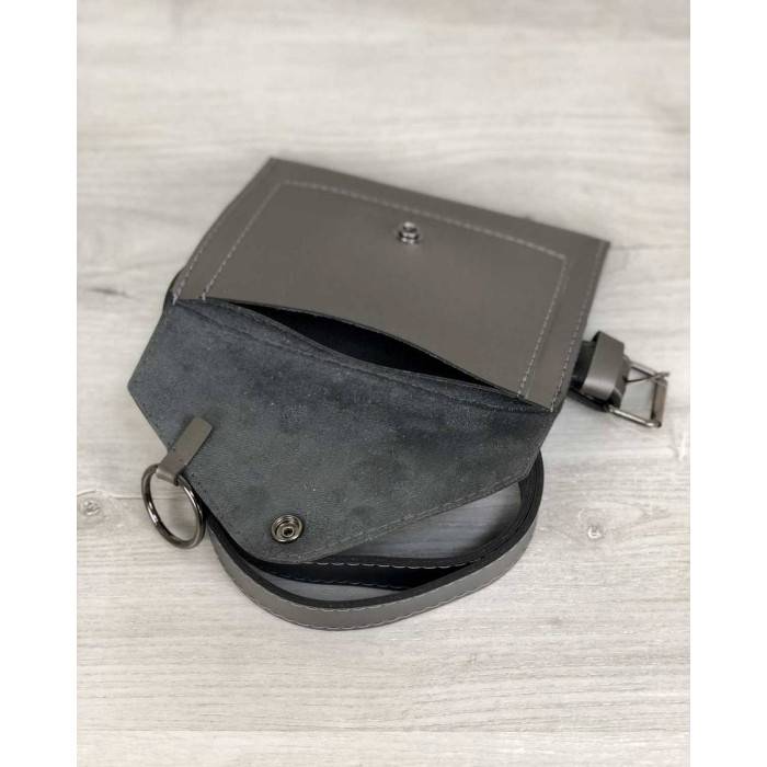 Молодіжна шкіряна сумка на пояс Moris виготовлена з еко-шкіри високої якості. Має одне відділення, яке відкривається за допомогою кнопки. Сумка без підкладки, всередині має 2 відділення. Діаметр кільця на сумці 4 см.