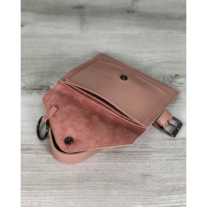 Молодіжна шкіряна сумка на пояс Moris виготовлена з еко-шкіри високої якості. Має одне відділення, яке відкривається за допомогою кнопки. Сумка без підкладки, всередині має 2 відділення. Діаметр кільця на сумці 4 см.