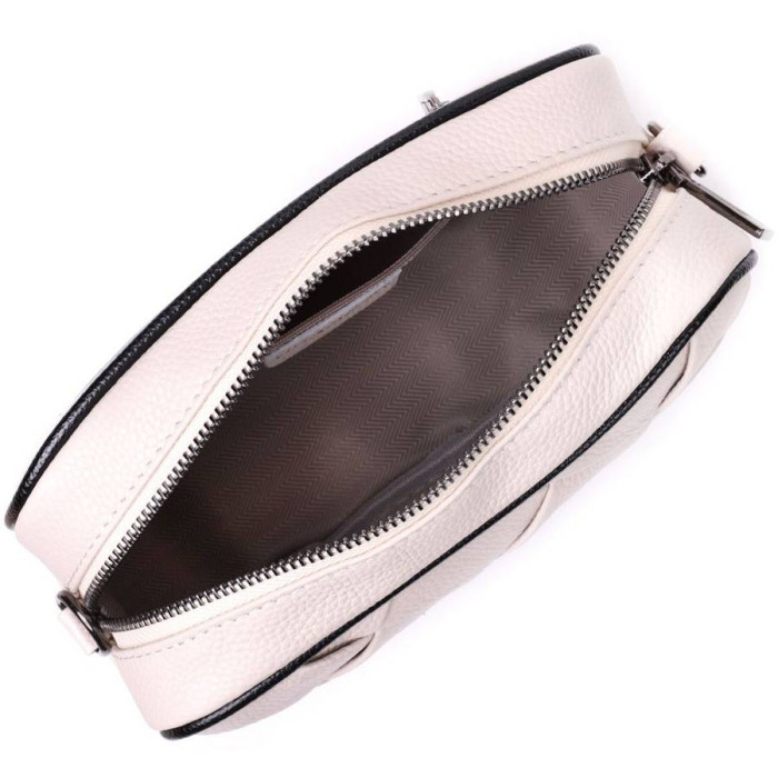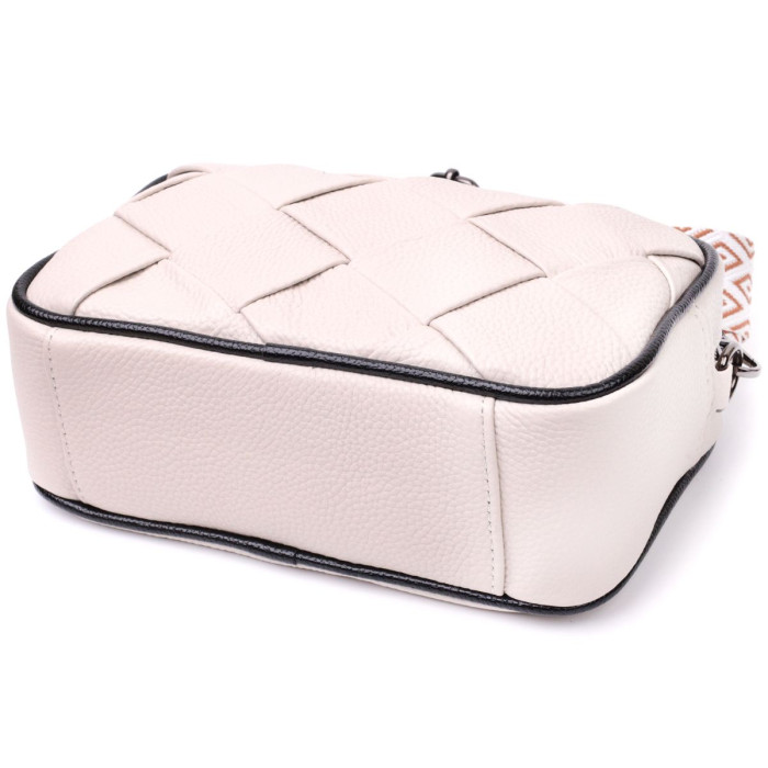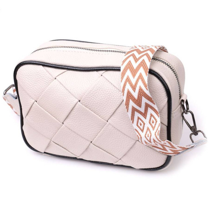Акуратна жіноча сумка з ромбоподібною палітуркою на лицьовій стороні. Виріб пошитий з якісної натуральної шкіри, яка довго носиться і не втрачає свого первісного вигляду. Аксесуар складається з одного основного відділення всередині якого розташована кишеня відкритого типу і кишеня на блискавці, також зовні розташована кишеня на блискавці, на тильній стороні. Носити сумку можна в руці як клатч, на плечі та через плече, для цього є текстильний ремінь, що знімається. У виробі використано якісну фурнітуру кольору темного срібла. Універсальний варіант сумки як на вечір так і як сумочка на кожен день.
