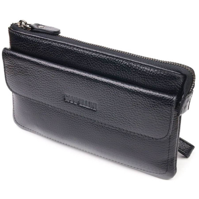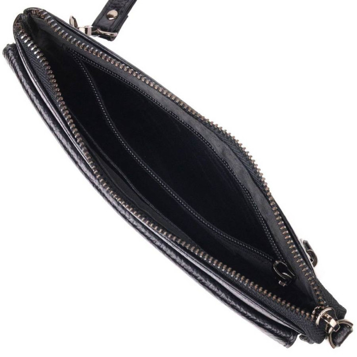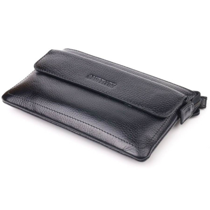 Стильний клатч для чоловіків з натуральної шкіри флотар. Аксесуар має одне основне відділення, всередині якого дві бічні кишені, відкритого та закритого типу та три осередки для кредитних карток. Зовні у виробі розташовані дві кишені, одна під клапаном на лицьовій стороні, інша на блискавці, на тильній стороні. Внизу аксесуара є ремінець для носіння на руці, що дуже зручно у використанні, також є кистьовий ремінь, що знімається. У барсетку ви можете покласти все необхідне і все буде під рукою.