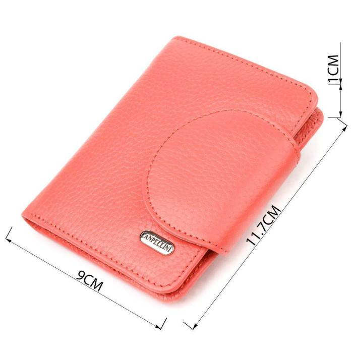 Красивий жіночий гаманець компактного розміру з натуральної шкіри в ніжному кораловому кольорі. Аксесуар має відділення для купюр, монетницю, що закривається на блискавку, три приховані кишені та чотири відсіки для карток, один під сіточкою. Закривається аксесуар клапаном на кнопку. Якісний шкіряний аксесуар завжди вважався показником смаку та достатку, саме такі вироби представлені у нашому магазині, у нас кожен знайде щось для себе.
