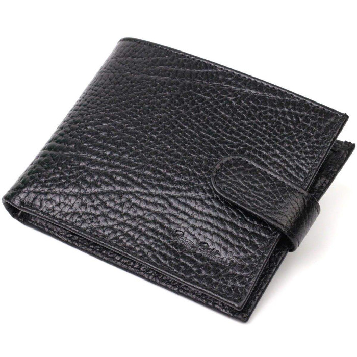 Місткий чоловічий гаманець із натуральної шкіри, горизонтального формату. Аксесуар складається з двох широких відділень для купюр, трьох осередків для пластикових карток, двох прилеглих кишень, двох кишень під сіточкою під документи та монетниці. У виробі використана якісна фурнітура, закривається гаманець шкіряним хлястиком на кнопку. Купуючи цей шкіряний гаманець, Ви не тільки набуваєте стильної речі, але й отримуєте якісний аксесуар, який прослужить не один рік.