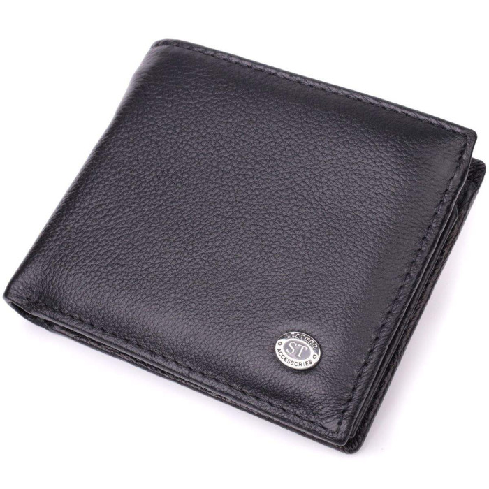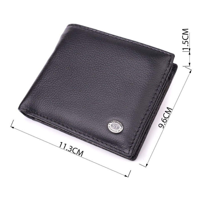 Компактний чоловічий гаманець для стильних чоловіків. Аксесуар з натуральної шкіри, він складається з двох містких відділень для купюр, кишені на блискавці, однієї кишені під плівкою, шести осередків для карток, двох прихованих кишень та кишені для монет. Портмоне доповнено надійною фурнітурою та міцною підкладкою. Запакований гаманець у фірмову картонну коробку білого кольору.