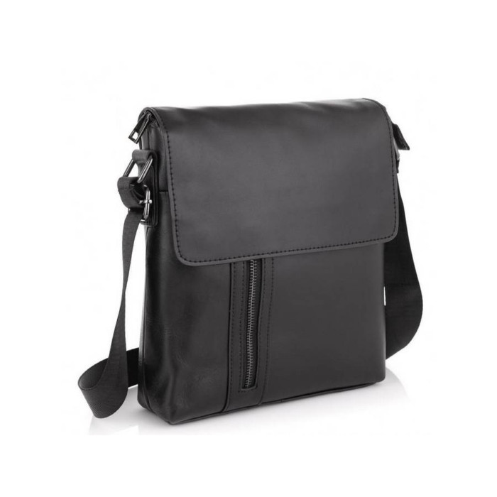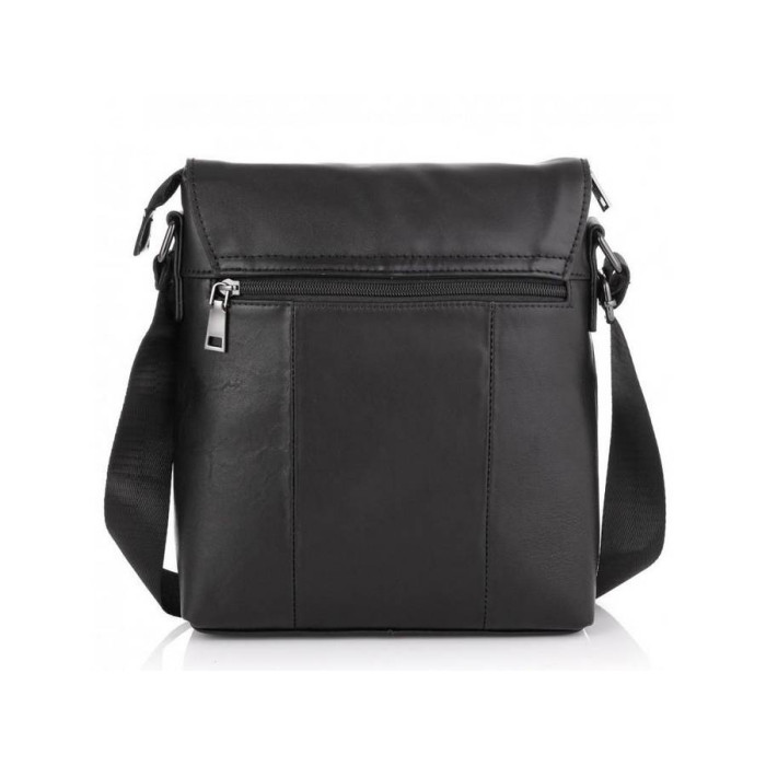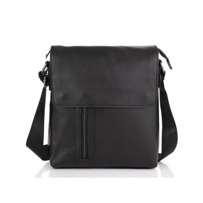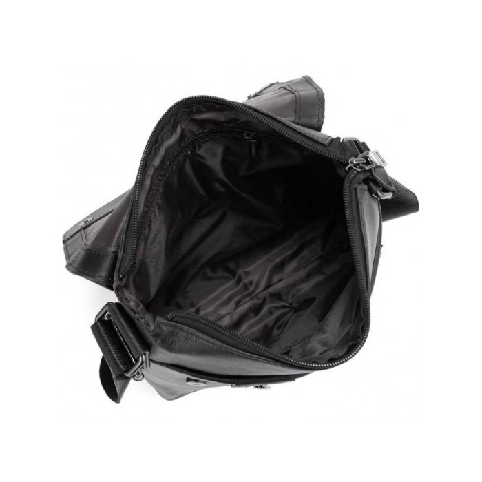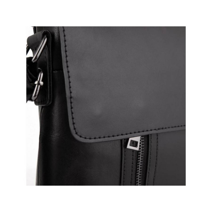 Чоловічий месенджер чорного кольору виконаний з натуральної шкіри гладкої структури.