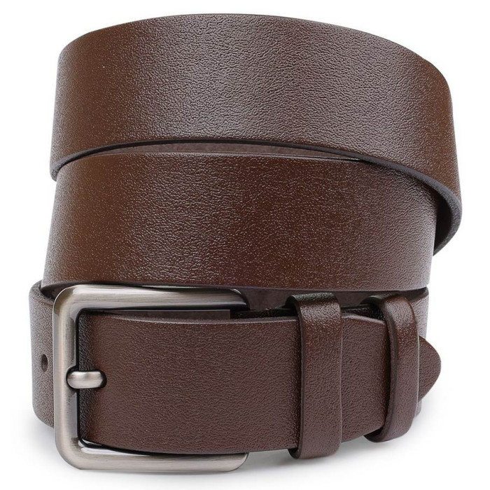 Відмінний чоловічий ремінь в красивому коричневому кольорі, що виглядає дуже стильно і багато. Матеріал виготовлення - натуральна високоякісна шкіра з високими показниками зносостійкості. Ремінь має дрібнозернисту фактуру і класичну надійну пряжку, що особливо цінують чоловіки.
