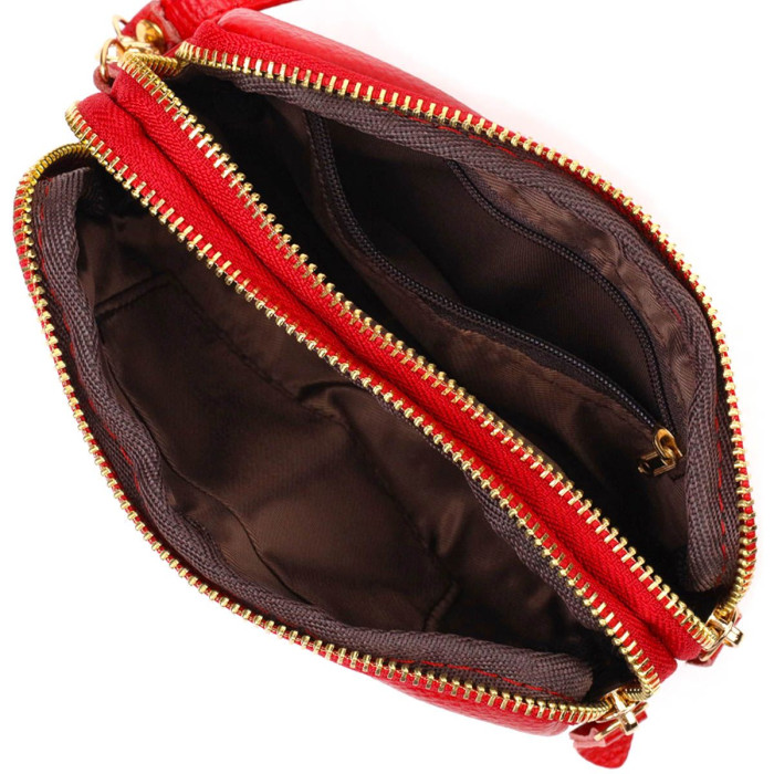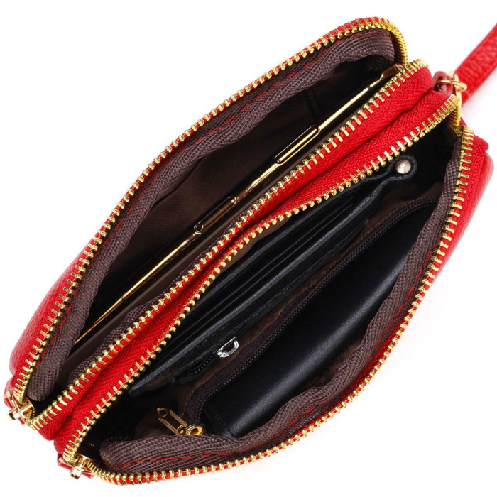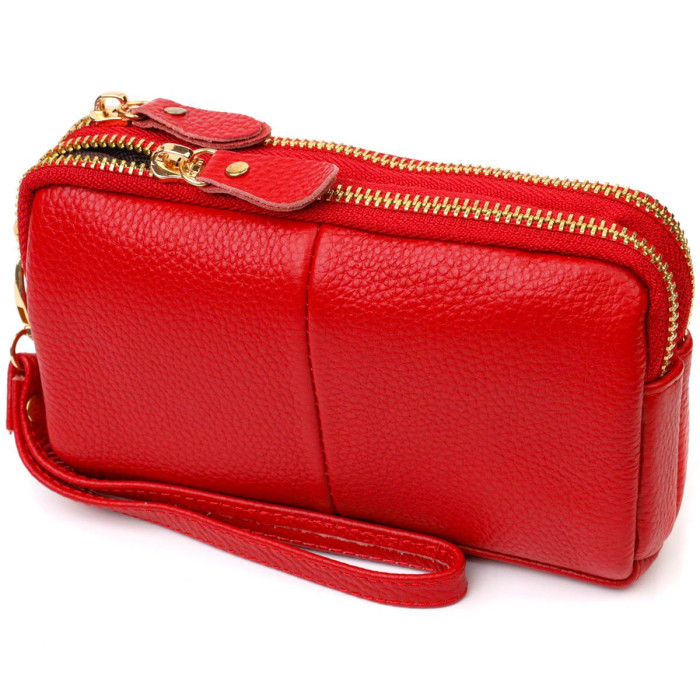 Яскрава жіноча сумочка-клатч із натуральної м'якої шкіри високої якості. Виріб дуже зручний, можна носити в руці та на зап'ясті, відмінний варіант для любителів невеликих сумок. Модель доповнена фурнітурою золотистого кольору. Аксесуар має два основні відділення у яких по кишеньці - на блискавці та відкритого типу. Закривається клатч на блискавку.