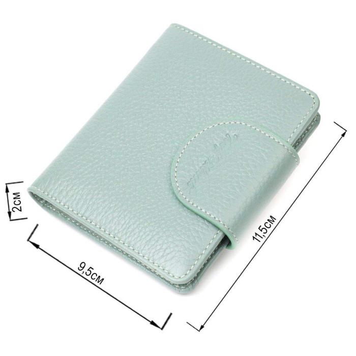 Модний місткий жіночий гаманець із натуральної шкіри. Аксесуар складається з двох широких відділень для купюр, дев'яти осередків для пластикових карток, двох прилеглих кишень, кишені під сіточкою та монетниці під клапаном зовні. У виробі використано якісну фурнітуру золотистого кольору. Закривається гаманець шкіряним хлястиком на кнопку. Купуючи цей шкіряний гаманець, Ви не тільки набуваєте стильної речі, але й отримуєте якісний аксесуар, який прослужить не один рік.