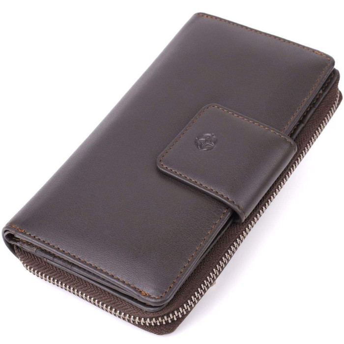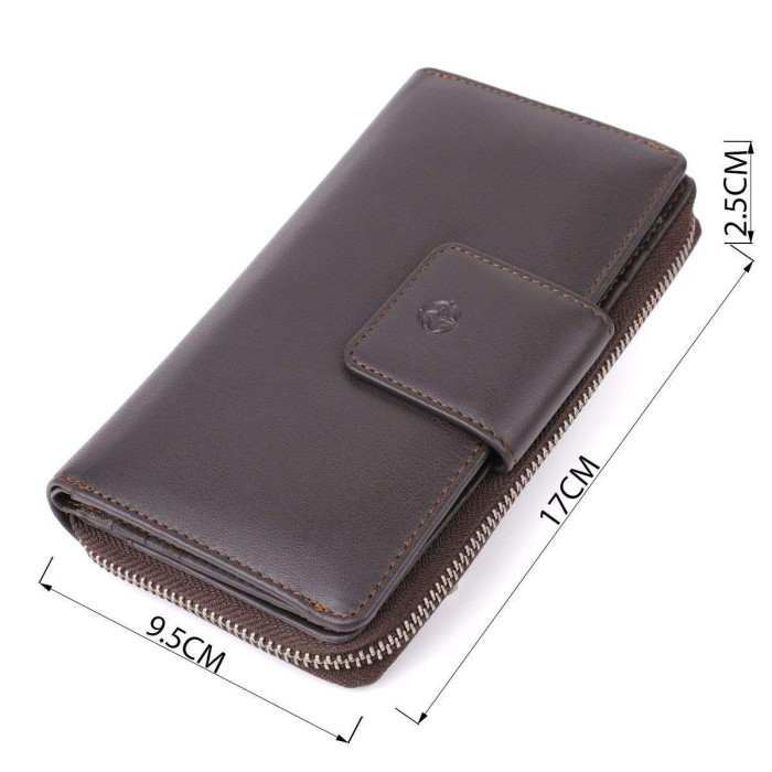 Зручне портмоне Tony Perotti коричневого кольору виконане з натуральної шкіри і відрізняється продуманою організацією внутрішнього простору. Модель розрахована на зберігання купюр у розкладеному вигляді, що забезпечує додатковий комфорт у використанні. Якісна брендована фурнітура підкреслює преміальний рівень виробу, а класичний дизайн робить портмоне універсальним аксесуаром та чудовим подарунком для жінки.