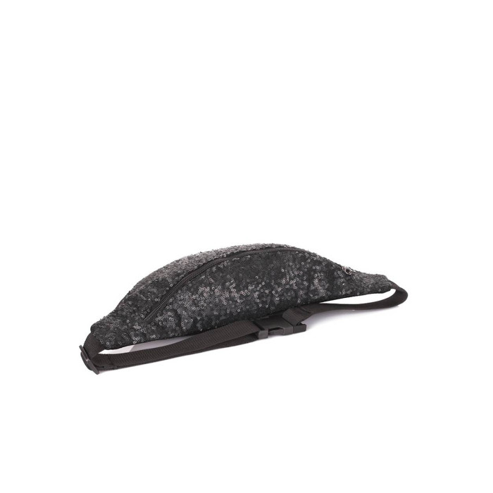 Матеріал: паєтки Підкладка: поліестер Одне відділення, застібка "блискавка" Розміри: ширина 42см, висота 14см, товщина 9 см, регульований ремінь (максимальне охоплення 110см) Виробник POOLPARTY (Україна)