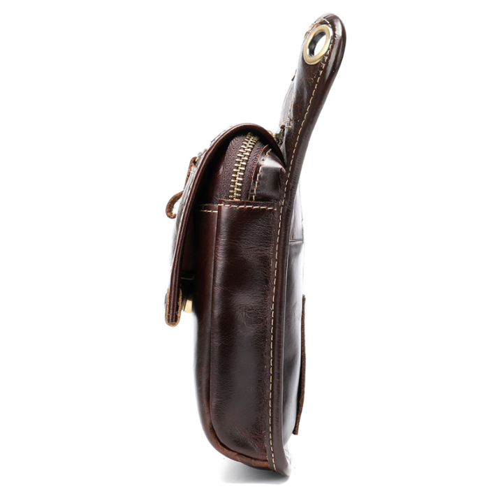 Компактна шкіряна сумка, яка з легкістю зможе замінити вам барсетку. Особливістю сумки є те, що ви можете носити її повісивши на свій ремінь або ногу. З такою сумочкою все буде у вас під рукою і перед очима. Сумка, яка кріпиться на пояс забезпечить безпеку всім вашим особистим речам і звільнить руки. Модель доповнена міцною металевою фурнітурою сріблястого кольору. Сумка буде знахідкою для водіїв, таксистів і чоловіків, які проводять багато часу за кермом. Аксесуар упакований в пилозахисний чохол.