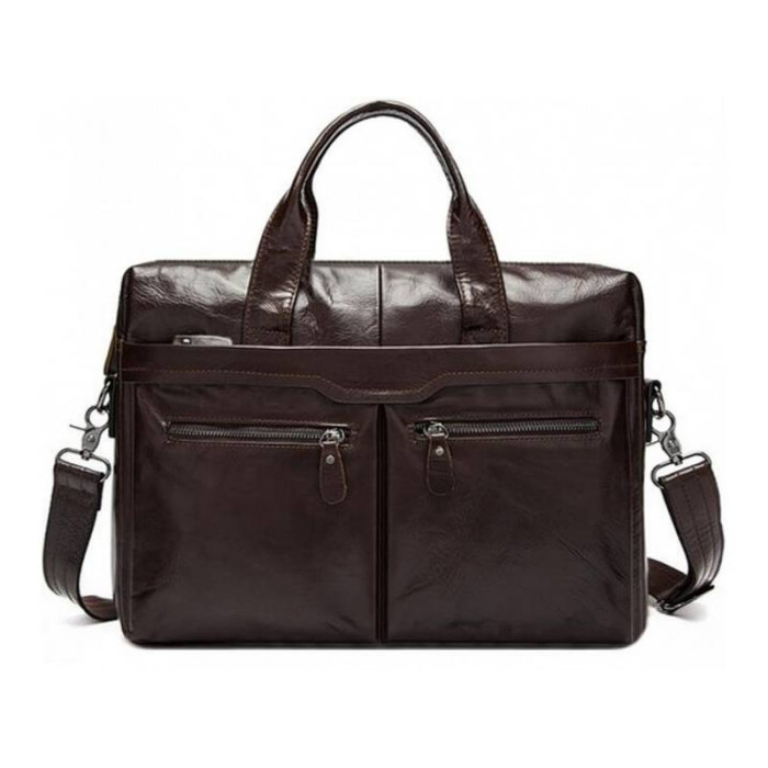 Чоловіча сумка від Bexhill в класичному стилі виготовлена з натуральної шкіри. Вона ідеально підходить в якості сумки для ноутбука діагоналлю 14 дюймів, планшета або макбука. Чоловіча ділова сумка ідеально підійде для роботи на кожен день. Анатомічно зручні ручки для носіння сумки в руці, знімна наплічна шлейка,виготовлена з натуральної шкіри, якісна фурнітура і містке основне відділення та декілька карманів - основні переваги представленої моделі. Іноваційний спосіб обробки шкіри зробив поверхню сумки гладкою, приємною на дотик, і водночас міцною та стійкою до несприятливих погодних умов.