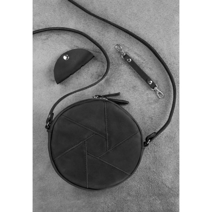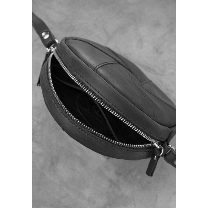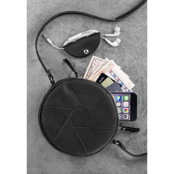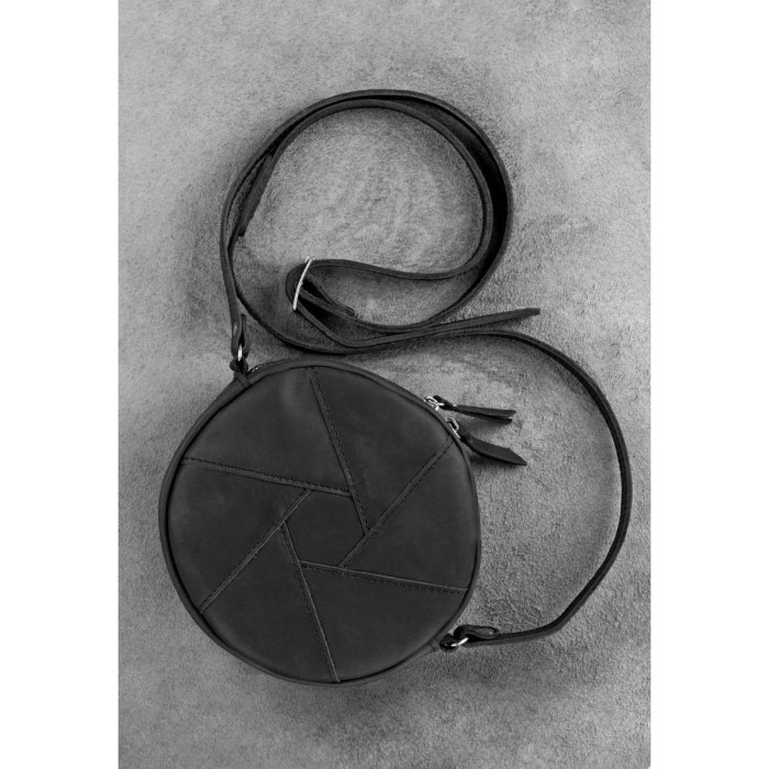 Для створення цієї круглої сумки майстри використовували шкіру, на якій присутні потертості, подряпини і інші сліди часу. Це надає сумці особливий шик і елегантність. Створюється відчуття, що це «річ з історією», раритетна, вінтажна, що володіє особливою красою.