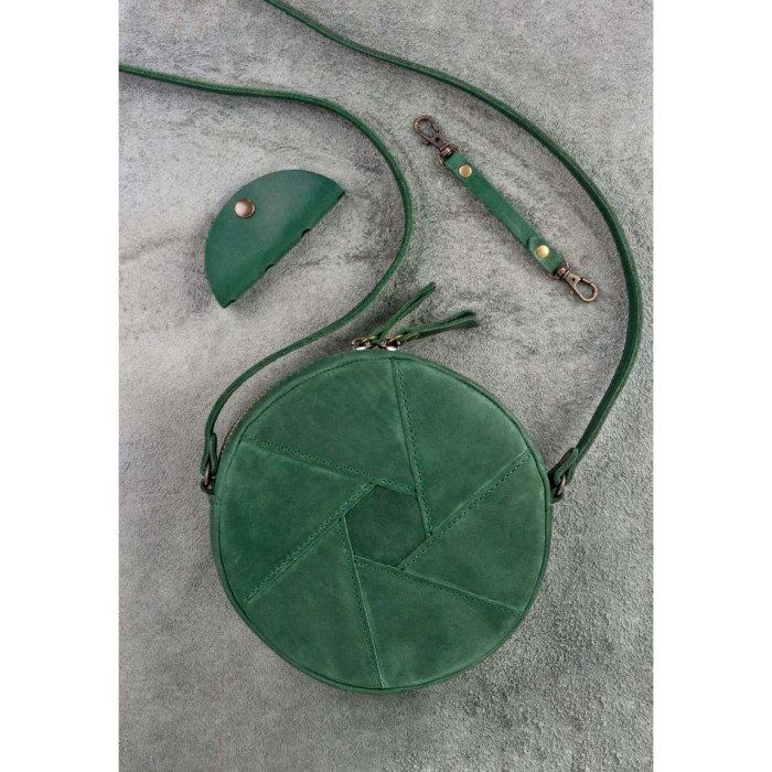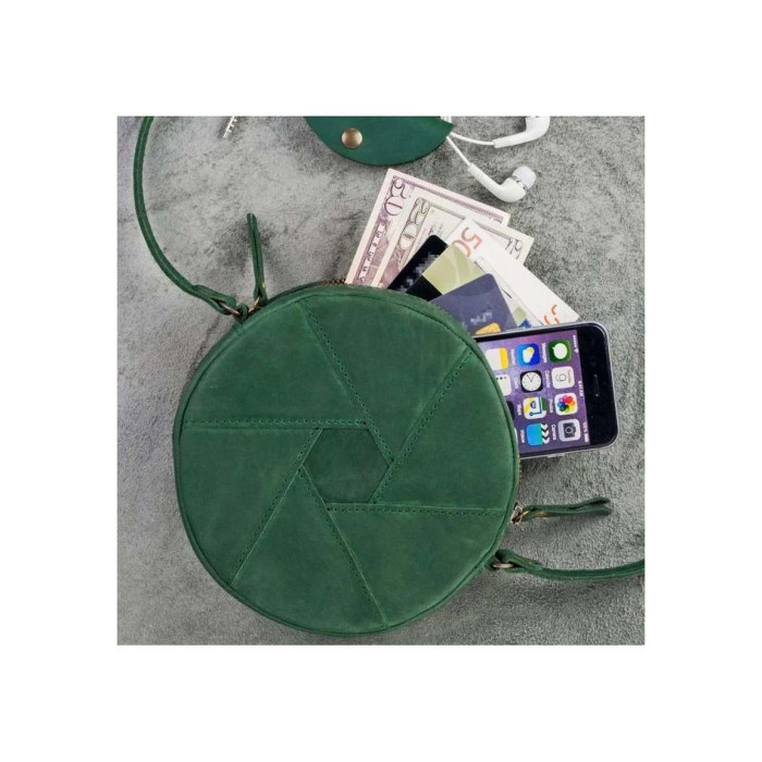 Чудова сумка з натуральної шкіри в гарному темно-смарагдовому відтінку.