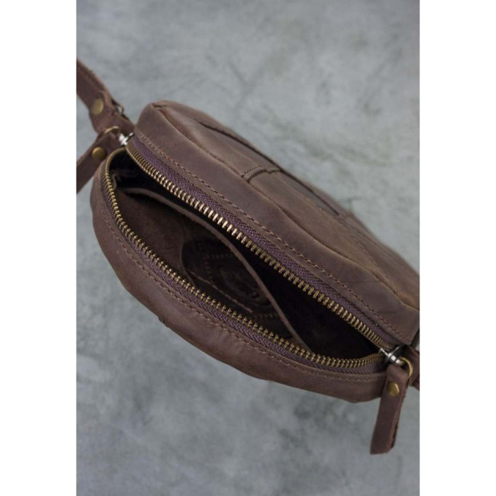 Усередині сумки одне відділення, в якому є 2 кишені для різних дрібниць. Закривається на металеву блискавку. Носити сумку можна на ремені зі шкіри, довжина якої легко регулюється.