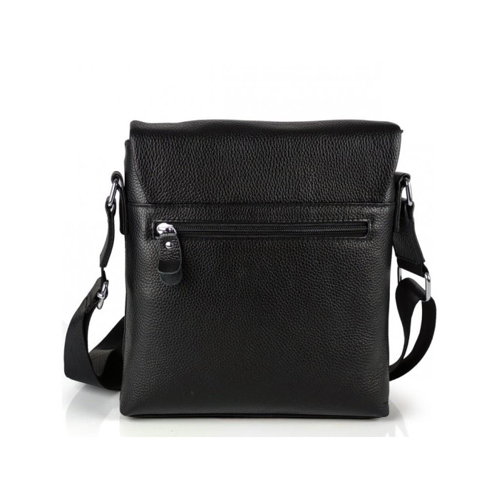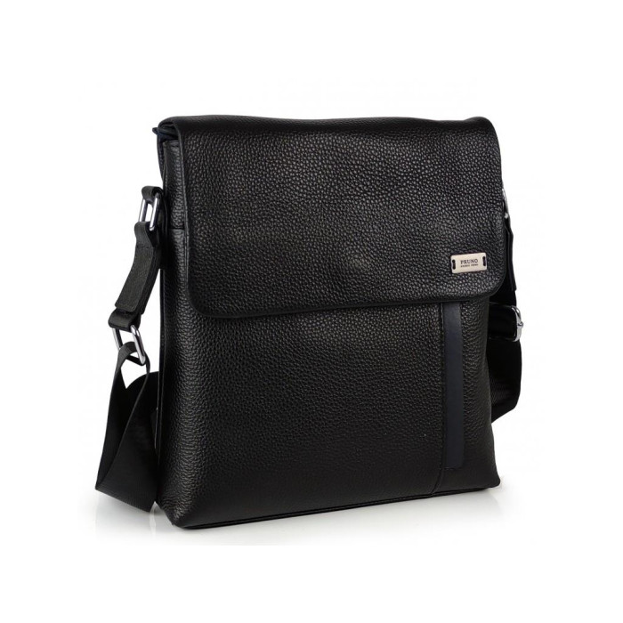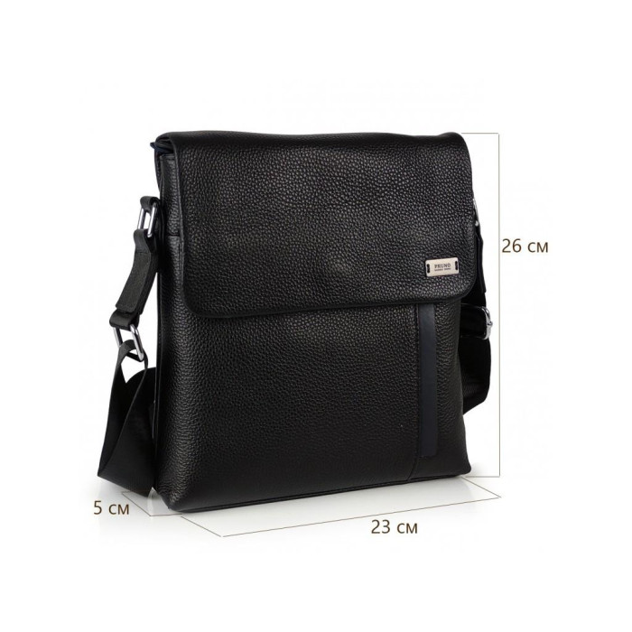 Чоловіча шкіряна сумка Ricardo Pruno RP-F-A25F-9913A виготовлена з натуральної шкіри чорного кольору і має зернисту структуру.