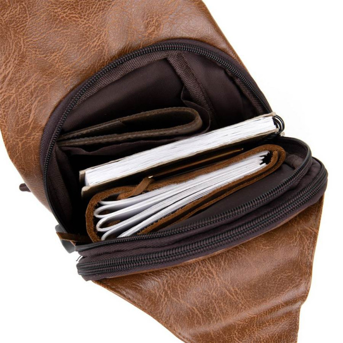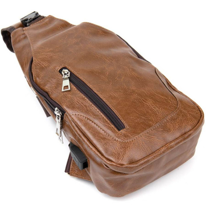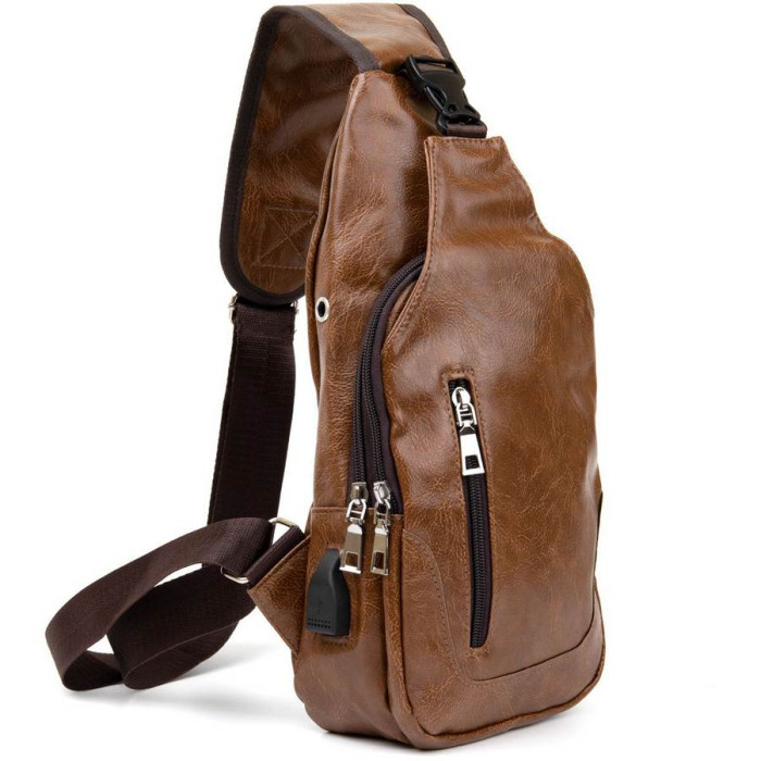 Дуже компактна сумка з якісного шкірозамінника коричневого кольору світлого тону. Ідеальна сумка для щоденного використання і поїздок. Сумка містка і дуже ергономічна. Виріб продумано з урахуванням всіх тенденцій під практичного сучасного чоловіка. З сумкою через плече всі ваші особисті речі будуть в безпеці і перед вашими очима. Функціонал і розташування кишень даної сумки робить більш легким доступ до ваших особистих речей. Сумка через плече стане прекрасним подарунком для ваших близьких.