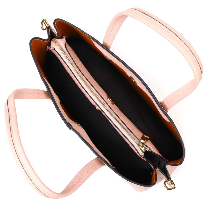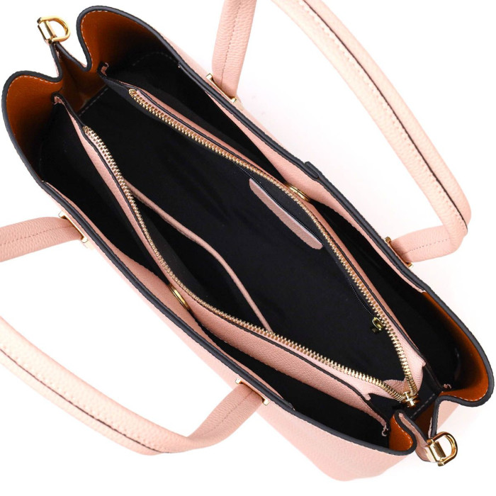 Красива модель жіночої сумки на кожен день з натуральної шкіри високої якості. Виріб дуже зручний, можна носити на плечі та в руках. Модель доповнена фурнітурою кольору жовтого золота. Аксесуар має три основні відділення (бічні відділення закриваються на магніти, а середнє на блискавку), в середньому відділенні дві бічні кишеньки - одна на блискавці та одна відкритого типу. Ідеальний варіант для будь-якої ділової жінки на будь-який сезон.