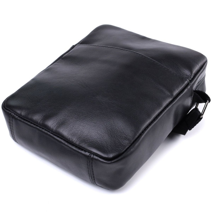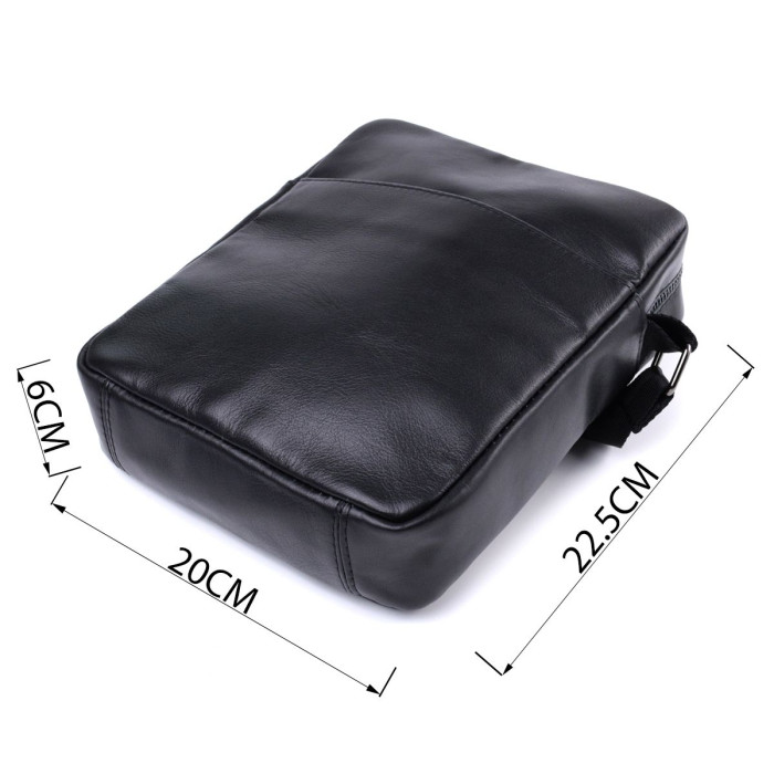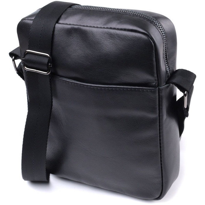 Практична чоловіча сумка месенджер, в яку помістяться всі ваші необхідні речі. Фурнітура металевого кольору - стійка не змінює свій колір у процесі носіння. Чудова чоловіча сумка вертикального формату виготовлена з натуральної гладкої шкіри чорного кольору. Аксесуар чудово поєднується з усіма стилями в одязі та може стати чудовим подарунком на будь-яке свято.