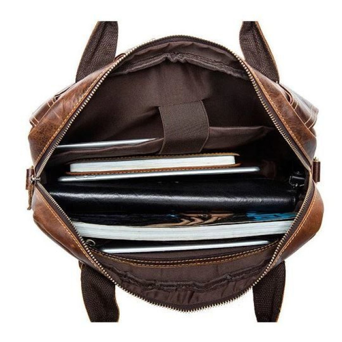 Стильна сумка для ноутбуку в коричневому кольорі з ефектом потертості. Аксесуар виконаний з натуральної телячої шкіри високої якості. Сумка доповнена різноманітними кишенями для найнеобхіднішого. Аксесуар красиво доповнить ваш образ і стиль. Переплачуючи за шкіряну сумку ви не пошкодуєте, так як вона прослужить вам дуже довго. Шкіра дуже невибаглива в догляді і при цьому довго носиться. Модель додасть завершеності вашому образу і підійде під будь-який стиль. Буде чудовим подарунком для близької людини.