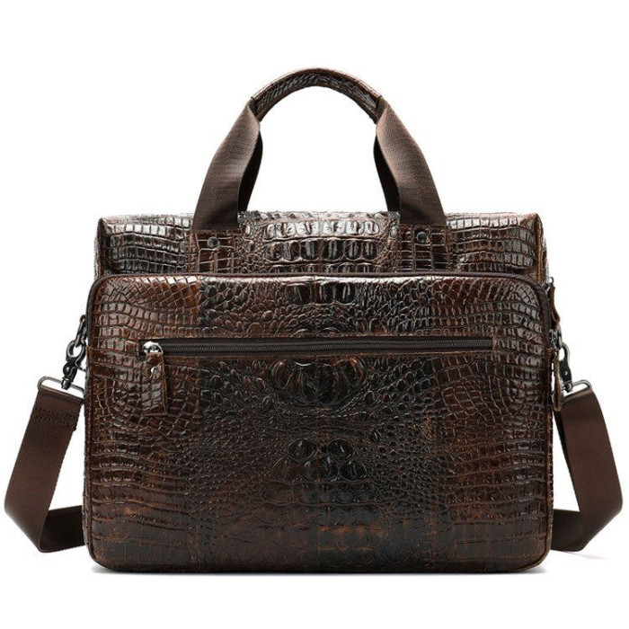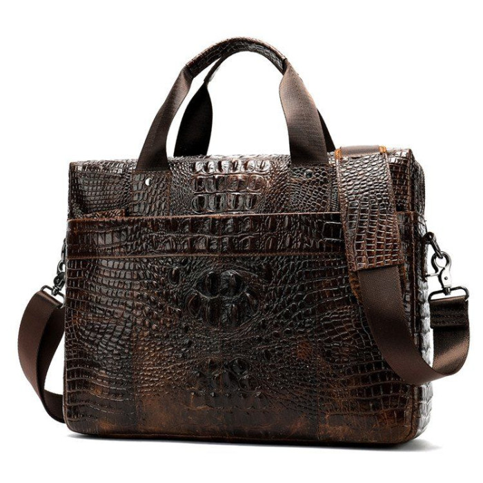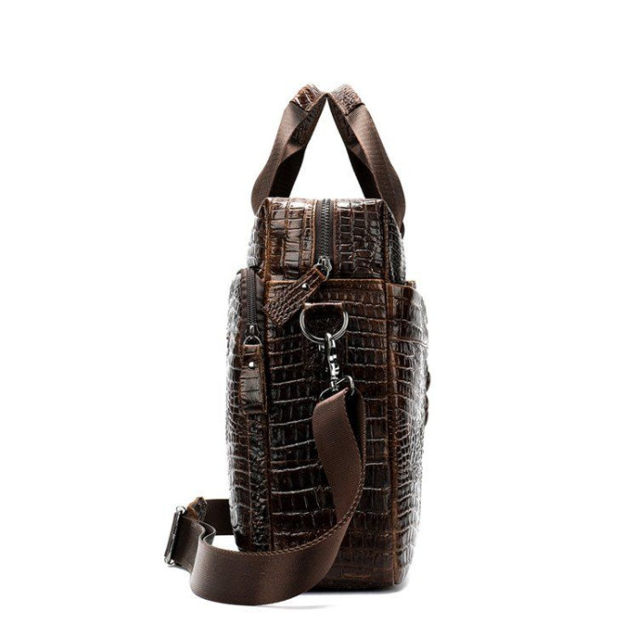 Солідна, якісна сумка з тисненням під крокодила з натуральної шкіри. У сумці зручно носити ноутбук, документи формату А4. Виглядає така сумка дуже солідно і розкішно. Шкіра такого плану дуже добре і довго носиться і невибаглива в догляді. Дуже комфортно ходити з такою сумкою на роботу або на зустрічі. Також, ви можете взяти сумку з собою в поїздку. Аксесуар відмінно підійде для чоловіків, які люблять почуття стилю і розкіш. Ідеальний подарунок для будь-якого чоловіка.