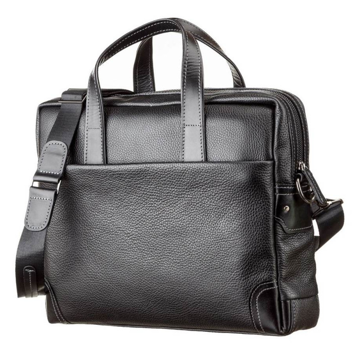 Багатофункціональна чоловіча сумка з двома зручними ручками для повсякденного використання, із зернистої натуральної шкіри, що дозволяє носити з собою ноутбук, папку з документами, особисті речі. Виріб складається з двох великих відділів, розділених ущільненою перегородкою.