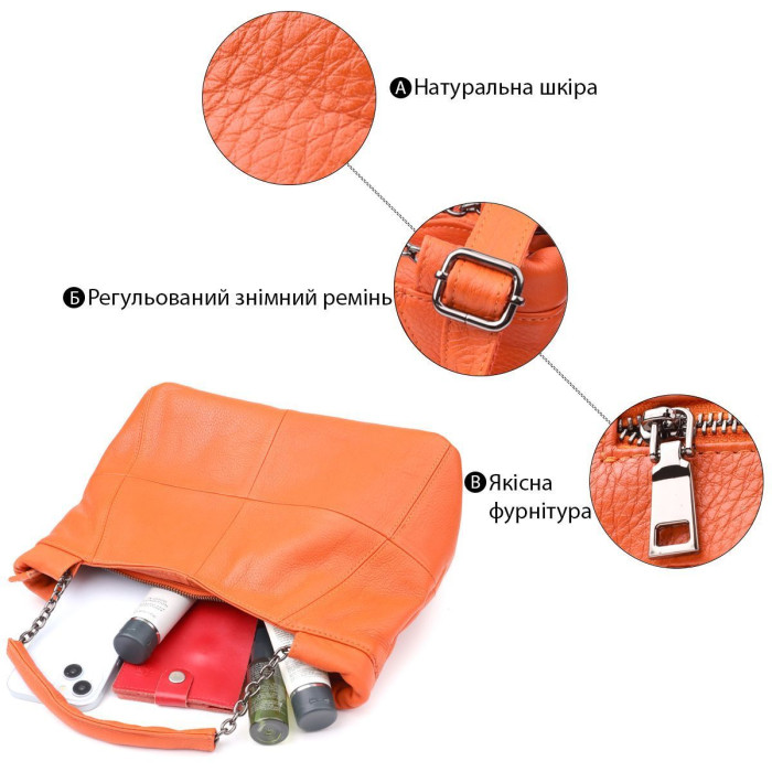Ця помаранчева шкіряна сумка від бренду Vintage - ідеальний вибір для жінок, які люблять яскраві рішення без компромісів у зручності та якості.