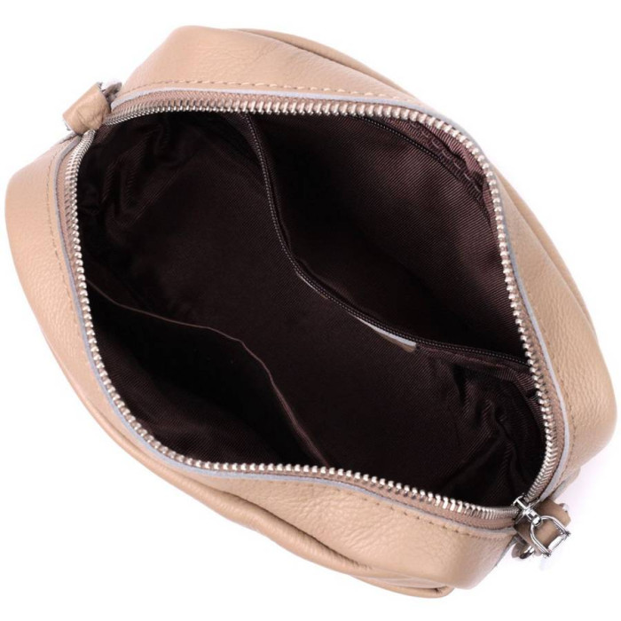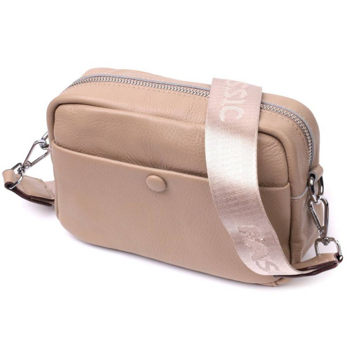 Жіноча прямокутна сумка з натуральної шкіри з високим показником якості та зносостійкості. Аксесуар складається з основного відділення, що закривається на блискавку, всередині якого знаходиться потайна кишеня на блискавці та кишеня відкритого типу, а також кишеня на блискавці на тильній стороні зовні та кишеня на магніті на лицьовій стороні. Носити сумку можна на плечі, через плече для цього є знімний регульований текстильний ремінь, а також як клатч під рукою. У виробі використано якісну фурнітуру срібного кольору.