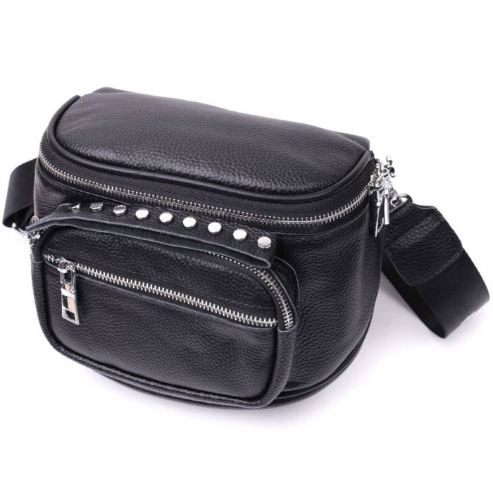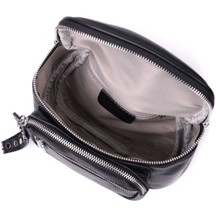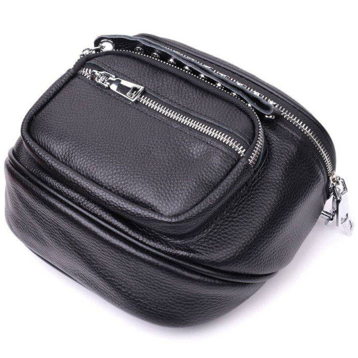 Запаморочлива сумка для жінок невеликого розміру з натуральної шкіри, яка невибаглива у догляді і довго носиться. Аксесуар складається з одного відділення, що закривається на блискавку, трьох кишень на блискавках, які розташовані всередині та зовні. Носити сумку можна на поясі, на плечі, а також через плече. В аксесуарі використано якісну фурнітуру кольору срібла. Відмінний варіант стильної сумки для жінок, які люблять якісні та стильні речі.