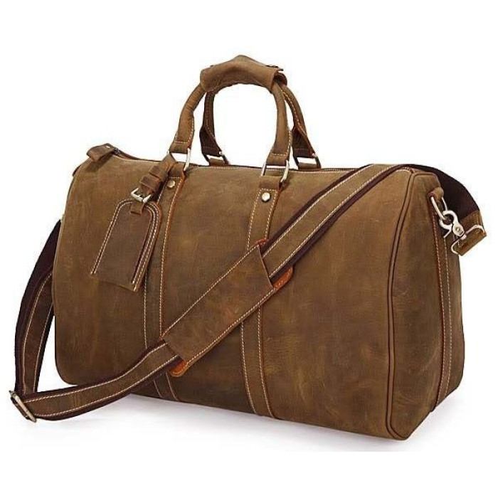 Чудова вмістка сумка виконана з вінтажної шкіри - Crazy Horse. Сумка виглядає компактно, але при цьому досить вмістка. Дана модель непогано тримає форму, за рахунок використання щільної шкіри. При виготовленні використана надійна фурнітура кольору латуні. Цей шкіряний саквояж можна носити як в руках за допомогою міцних шкіряних ручок, так і на плечі за допомогою зручного плечового ременя. Ця дорожня сумка ідеально підходить для ділових відряджень і подорожей.