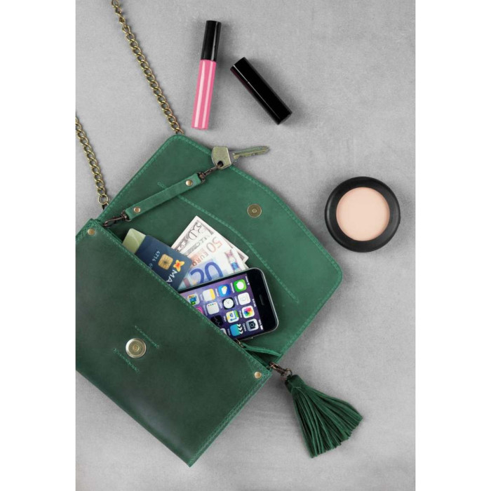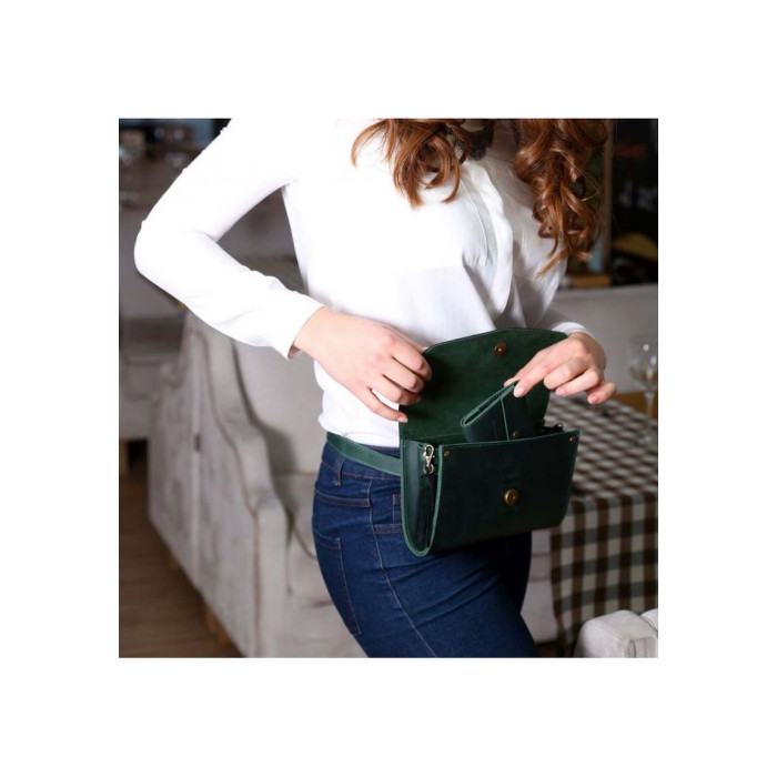 Носити сумку можна різними способами, в комплекті до неї йдуть два ремінця. За допомогою регульованого шкіряного ремінця, сумочку буде зручно носити на поясі або на грудях. А на плечі або через плече зручно носити з допомогою ремінця-ланцюжка.