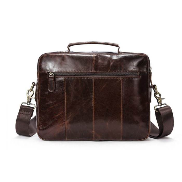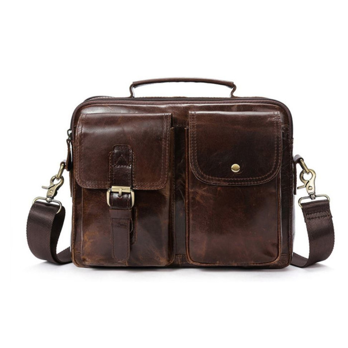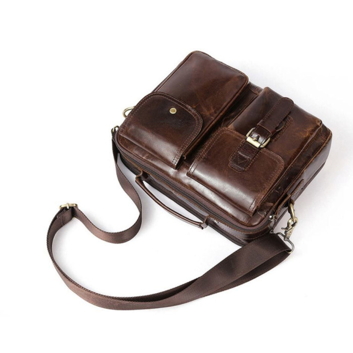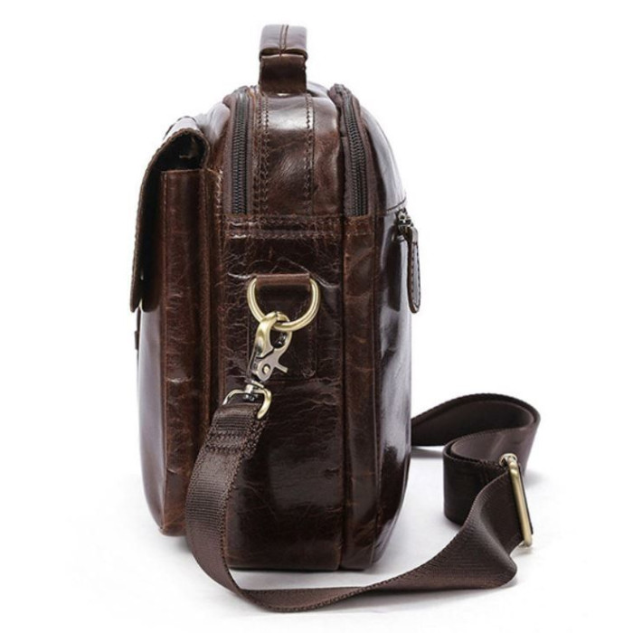 Модна горизонтальна сумка. Володіє різноманітними кишенями для всіх необхідних речей. Має коричневий колір, який переливається на сонці. Сумку зроблено якісно і буде носитися не один рік. Гладка на дотик. Модель упакована в текстильний мішок. Сумка відмінно підійде як варіант подарунка для близької людини.