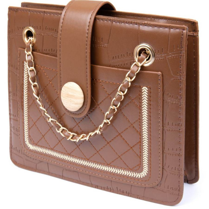 Повсякденна сумка коричневого кольору для жінок зі шкірозамінника зі світлою ниткою по краях. Сумка має ідеальний розмір на кожен день. Аксесуар дуже стильний. Сумка прекрасно підійде для ділових зустрічей. З такою сумкою ви отримаєте безліч компліментів. Виріб на нашому сайті в єдиному екземплярі. Рекомендуємо сумку до покупки по самій вигідній ціні.