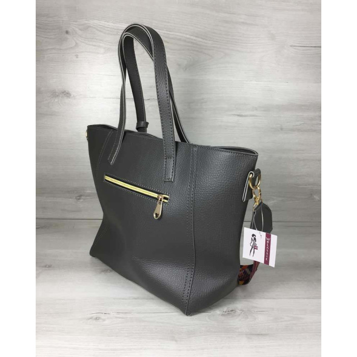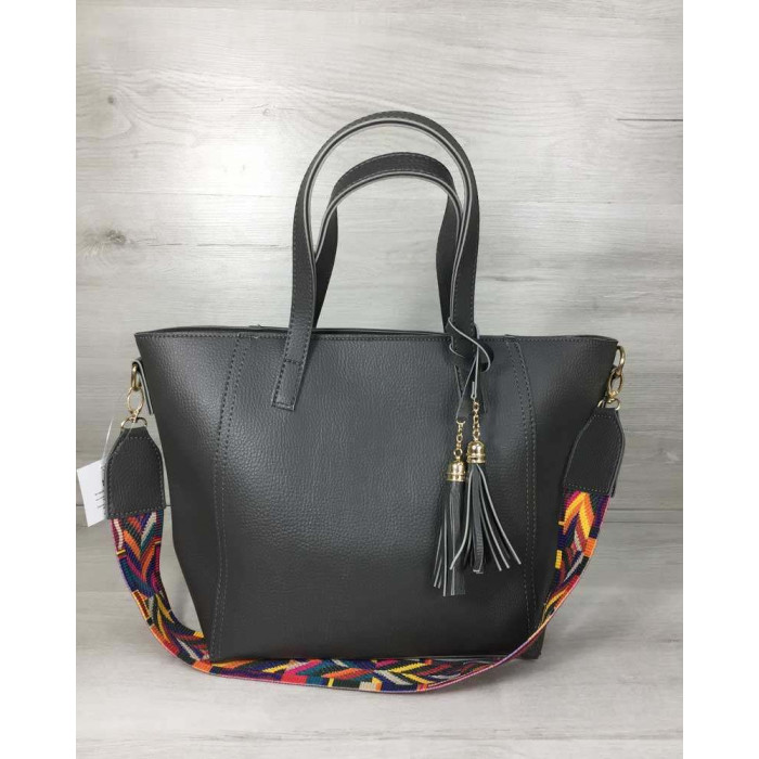 Сумка Пензлик з класичним ременем сірого кольору WeLassie