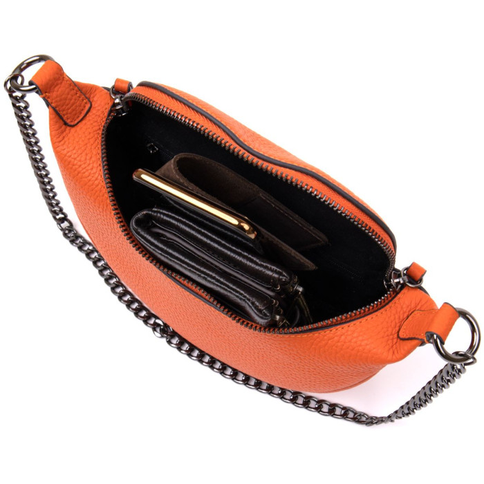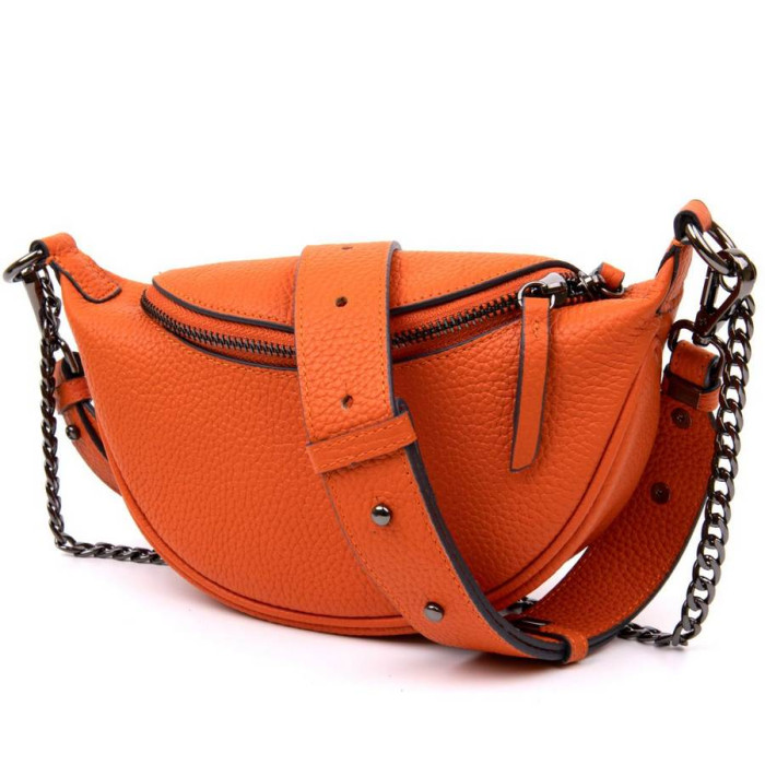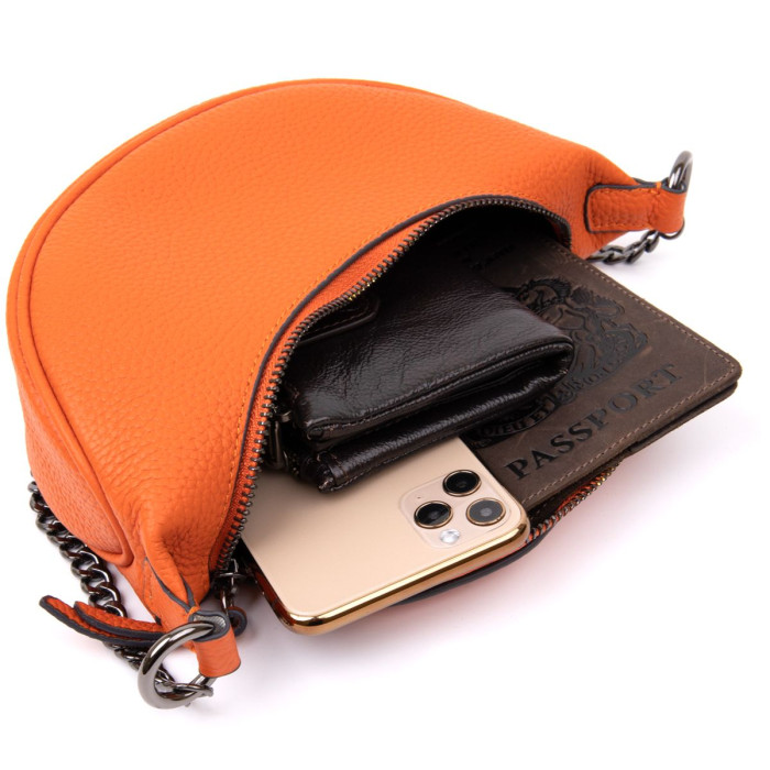 Компактна сумка в яскравому кольорі в шкірі типу флотар, яка невибаглива в догляді і довго носиться. Аксесуар має дві ручки - ланцюжок коротше і шкіряну ручку на плече. Виріб тримає форму і замінить вам вечірню сумку на дискотеку, а також ідеально підійде в якості маленької сумочки на кожен день. Сумка виглядає дуже презентабельно і стильно. Аксесуар стане прекрасним подарунком для ваших близьких.