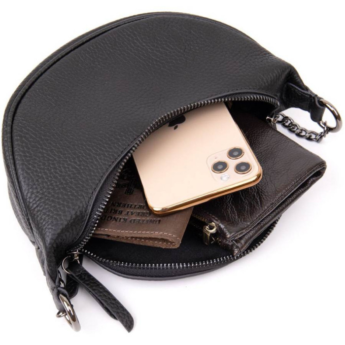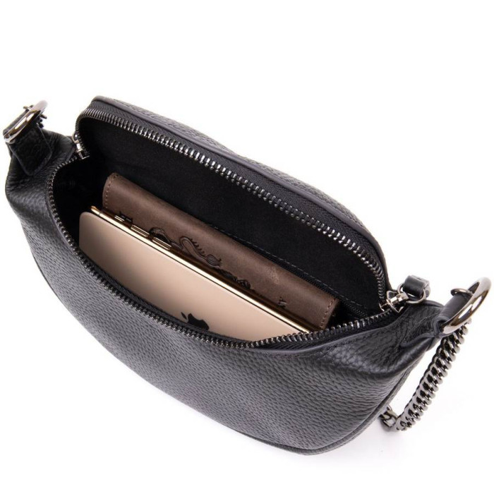 Компактна сумка в класичному і найпопулярнішому чорному кольорі в шкірі типу флотар, яка невибаглива в догляді і довго носиться. Аксесуар має дві ручки - ланцюжок коротше і шкіряну ручку на плече. Виріб тримає форму і замінить вам вечірню сумку на дискотеку, а також ідеально підійде в якості маленької сумочки на кожен день. До цієї сумку ви помістете всі найнеобхідніші особисті речі. Сумки виглядає дуже презентабельно і стильно. Аксесуар стане прекрасним подарунком для ваших близьких.