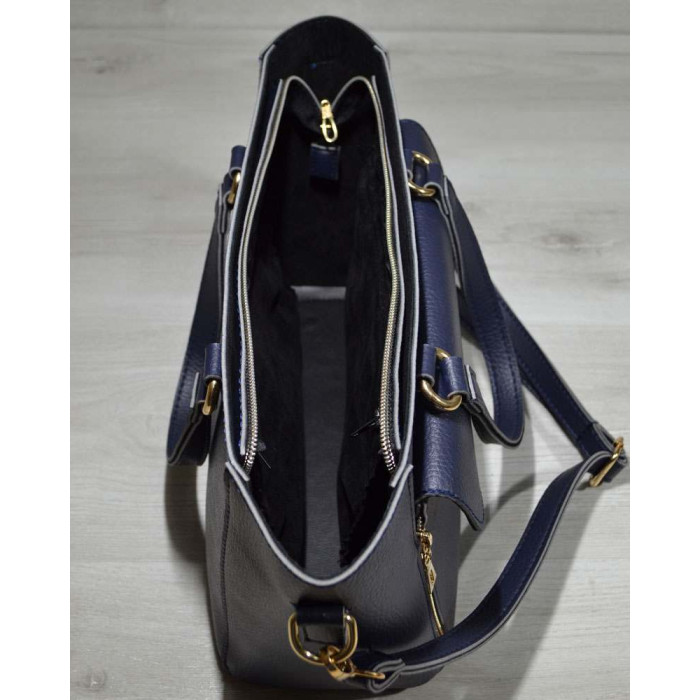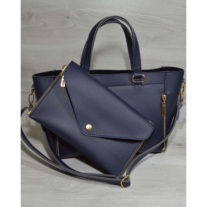 Молодіжна сумка плюс клатч синього кольору WeLassie, виготовлена з штучної шкіри високої якості. Еко-шкіра морозостійка, еластична, щільна, всередині на замшевої основі. Сумка має одне суцільне відділення, всередині нашиті дві кишені на блискавці. Ручки міцні - висота їх розрахована, щоб носити сумку в руці, або на згині ліктя. Є додатковий регульований ремінець, що дає можливість носити сумку на плечі. На днище встановлені 4 хольнитени високої якості. При покупці сумки 2в1 вам не доведеться купити клатч синього кольору, т. к. він вже є в цьому комплекті. Клатч може служити додатковим кишенею на кнопці, а також носитися в отстегнутом варіанті самостійно.