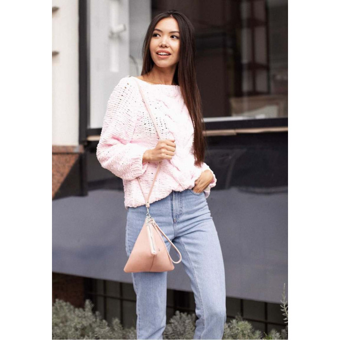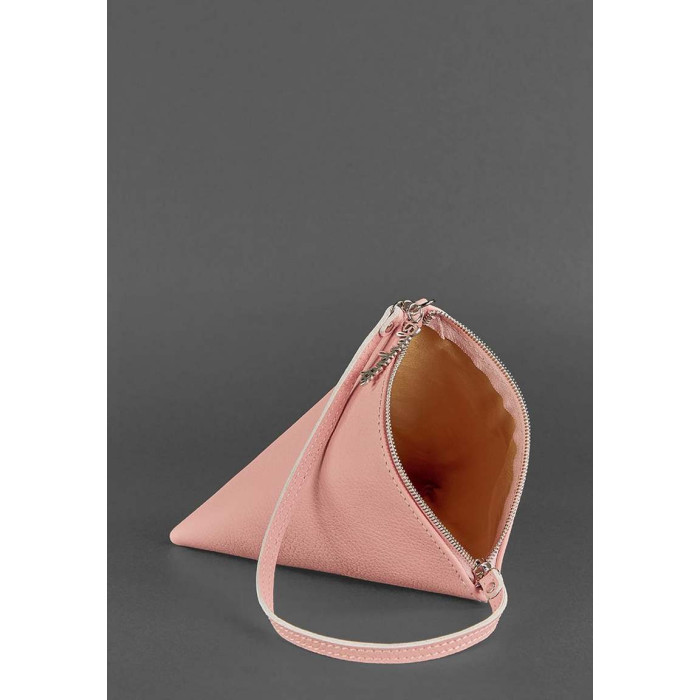 Ідеальна і оригінальна сумочка у формі піраміди здатна закохати в себе з першого погляду. В рожевому кольорі вона схожа на солодкий і повітряний зефір. Така сумочка стане відмінним акцентом й додасть нотку легкості і романтичності в образ.