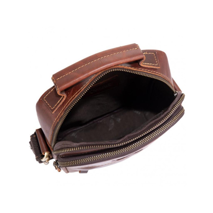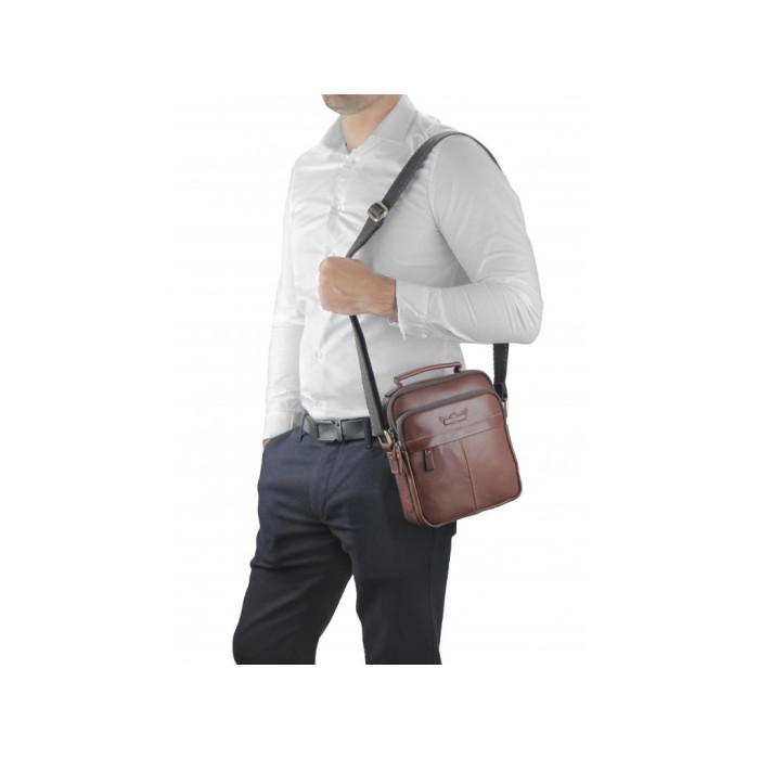 Виробник: Ruff Ryder Тип: сумка через плече Розміри (см): 19 х 25 х 6 Колір: коричневий Матеріал: натуральна шкіра Тип носіння: на плечі Плечовий ремінь: є Довжина плечового ременя (см): 80-150 Чоловіча сумка через плече в гладкій коричневій шкірі.
