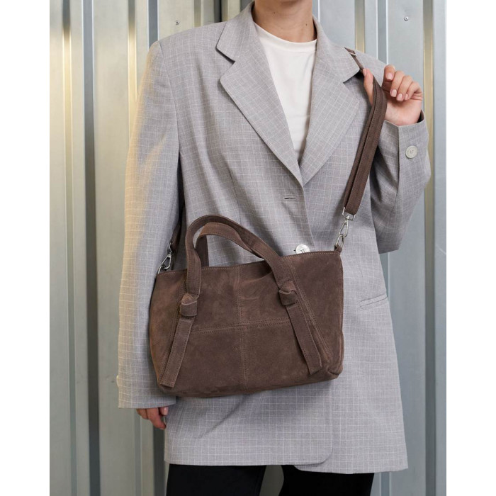 Жіноча сумка K72055, колір шоколадний, матеріал сумки натуральна шкіра, замша. Сумка відкривається з..