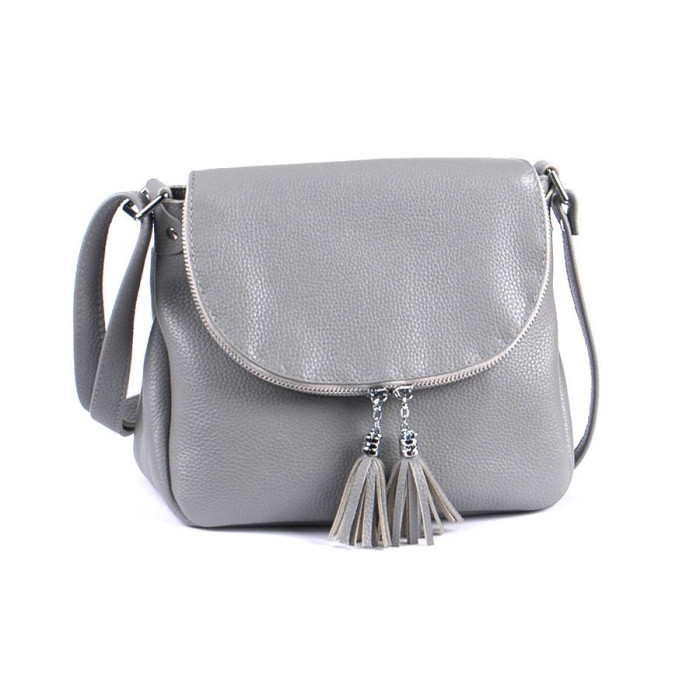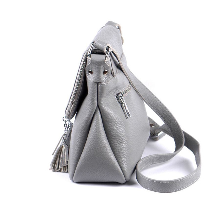 Сумка шкіряна жіноча через плече 190114 сіра з натуральної високоякісної шкіри