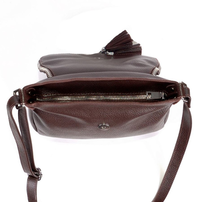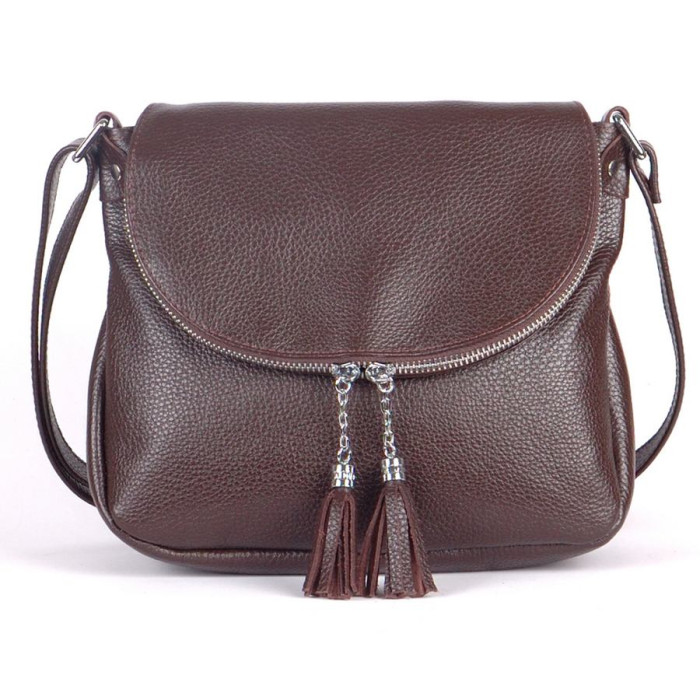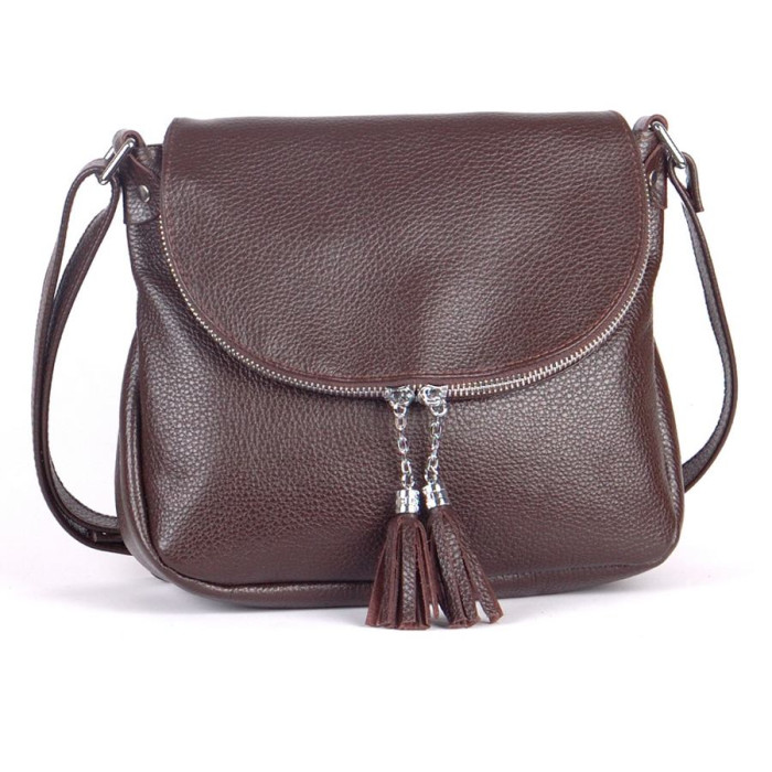 Сумка шкіряна жіноча через плече 190143 шоколадна з натуральної високоякісної шкіри