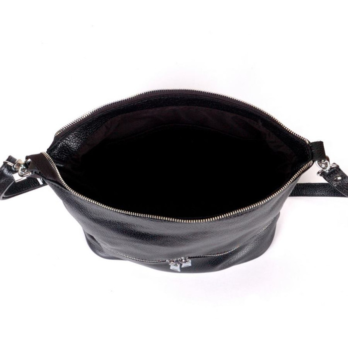 Сумка шкіряна жіноча через плече 420101 чорна виготовлена з натуральної шкіри, ідеально підходить для щоденного носіння