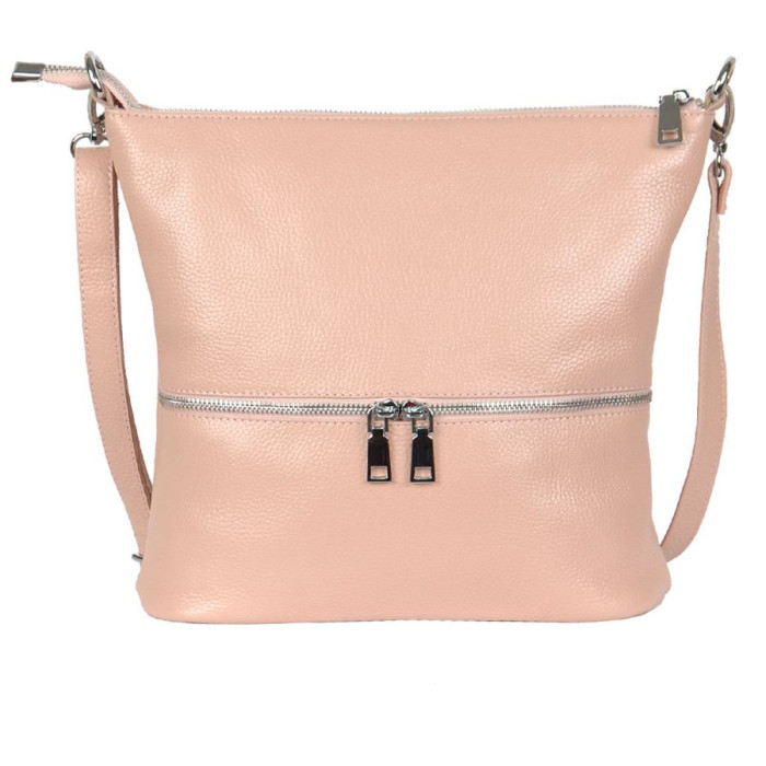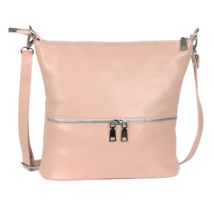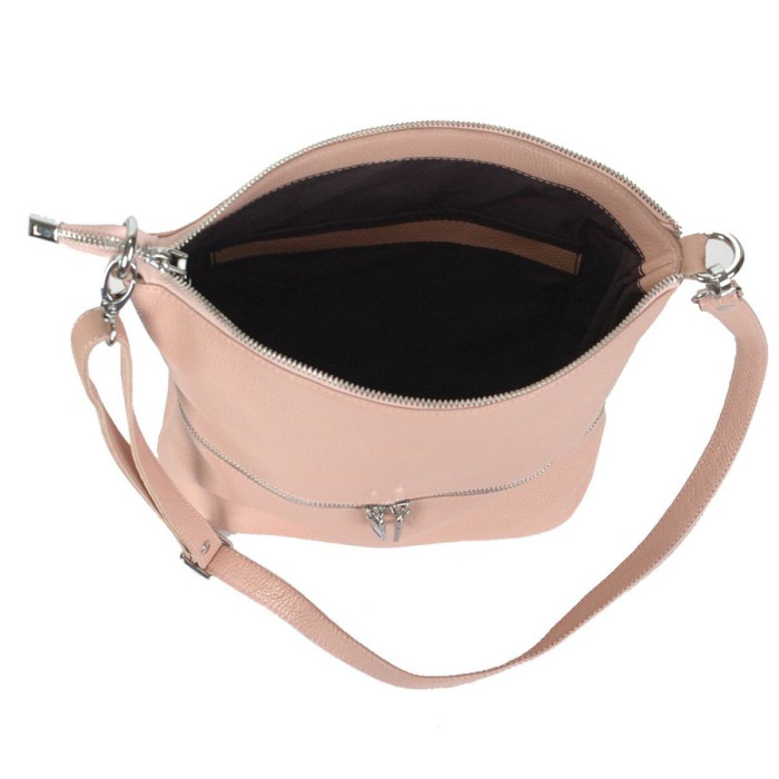 Сумка шкіряна жіноча через плече 420106 пудра виготовлена з натуральної шкіри, ідеально підходить для щоденного носіння