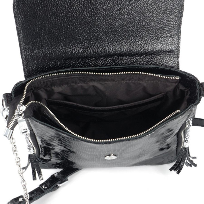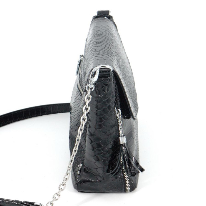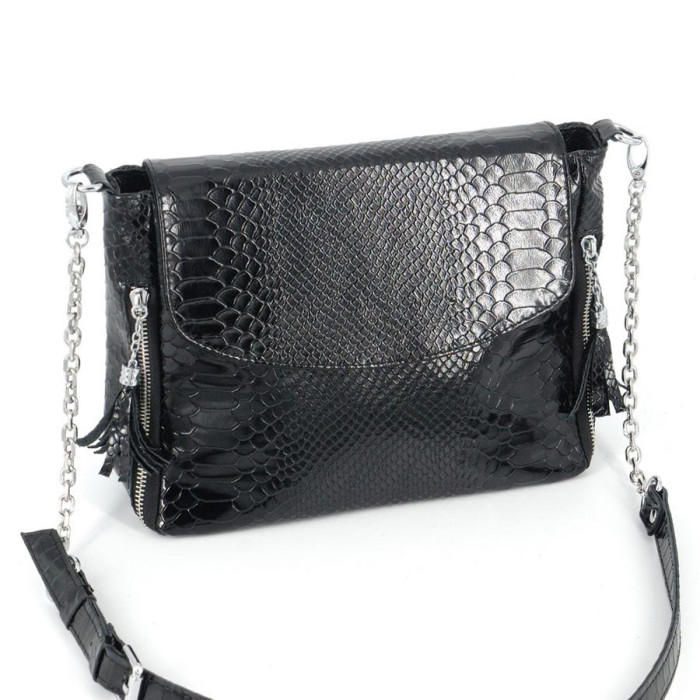 Сумка шкіряна жіноча через плече S570701-black пітон чорна виготовлена з натуральної шкіри Українського Виробництва